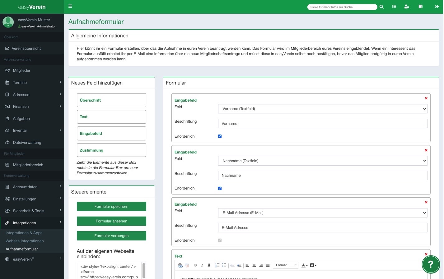 Wenn ihr euch bei easyVerein registriert, erhaltet ihr automatisch ein eigenes Intranet für eure Vereinsmitglieder sowie einen App-Zugang, bei dem jedes Mitglied über einen eigenen Login verfügen kann! Ihr selbst bestimmt dabei, welche Informationen eure Mitglieder einsehen können.