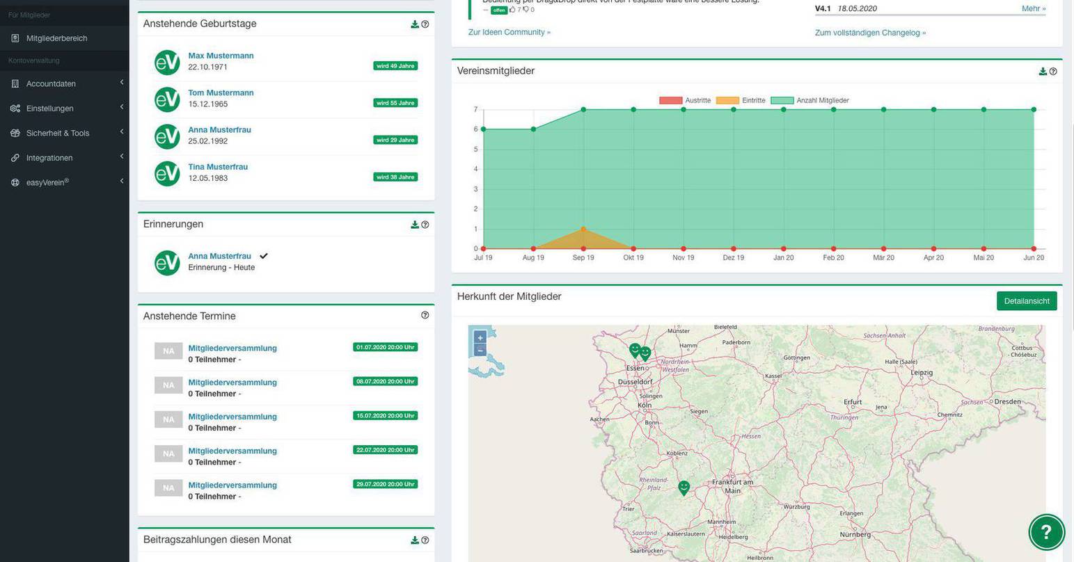 Bei der Verwaltung eures Vereins auf Papier oder in lokalen Software-Lösungen benötigt ihr stets physikalischen Zugriff auf eure Vereinsdaten und müsst eine Menge Zeit in Organisation und Verwaltung stecken. Mit der easyVerein Vereinssoftware könnt ihr eure Vereinsdaten jederzeit von überall und mit mehreren Mitgliedern gleichzeitig bearbeiten! Schnell, einfach und sicher!